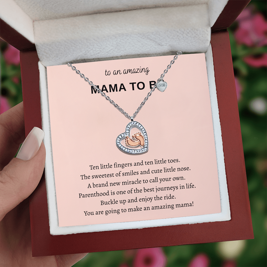 To An Amazing Mama To Be Baby Feet Heart Necklace